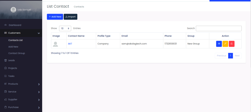 To View,Edit and Delete Contact