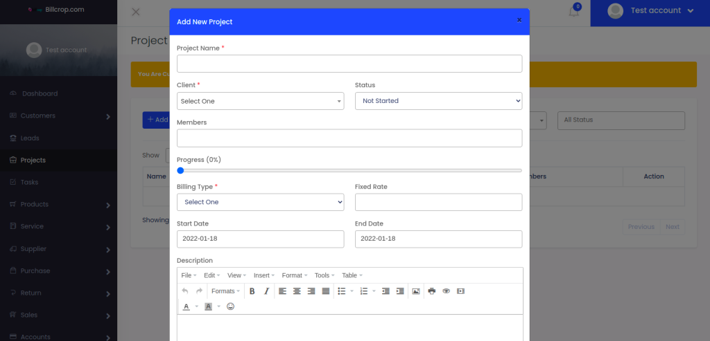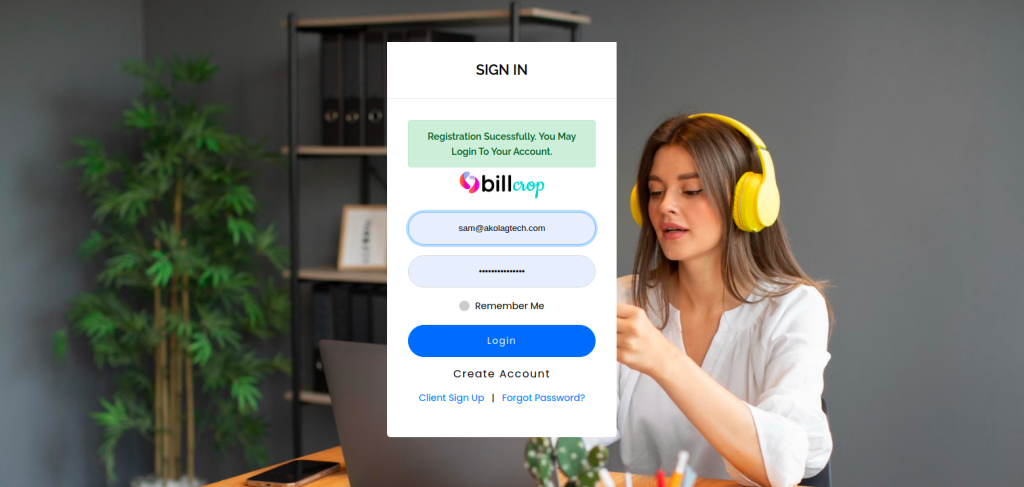 Login into your billcrop.com account, to access the CRM tools for your business.