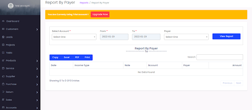Select Reports > Report By Payer> Select Account, date and transaction type and click View Report