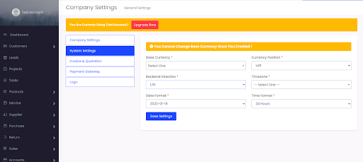 Select Settings > Company Settings > System Settings Fill the details correctly and select Save Settings
