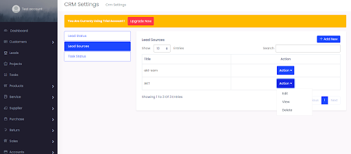 Select Settings > CRM Settings > Select Leads Sources, select option to Add New leads or Select existing leads sources to EDIT, VIEW OR DELETE.