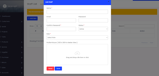 Select Staffs > Staff Roles > input details of the staff and select Save.