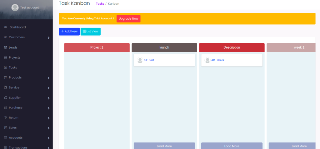 Select Tasks > Kanban View to see your tasks in the Kanban board view.