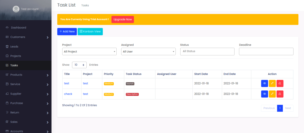 Select Accounts > View List Account , to view the list of accounts.