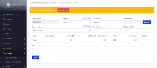 Select Purchase > Create Purchase Orders > input all the necessary details and click Save