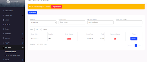Select Purchase > Purchase Order > Add new > input all the necessary details and click Save