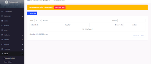 Select Returns > Purchase Returns > Add New, input the field and select Save