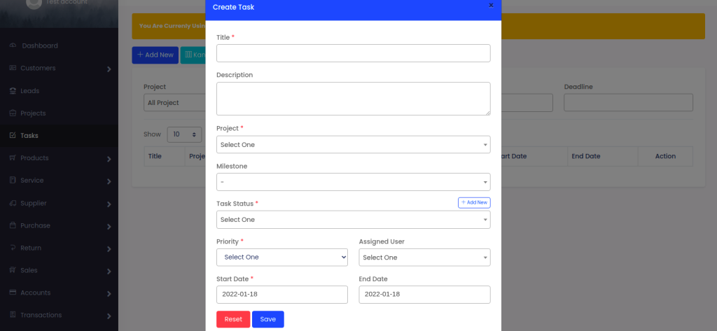 Select Task > Add New, input details of the task and click Save.